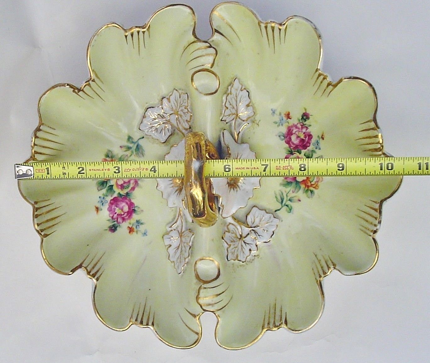 Antique Vintage 2 Compartment CANDY DISH w/Handle CROWN B LOGO Gilt 22/179 Eagle