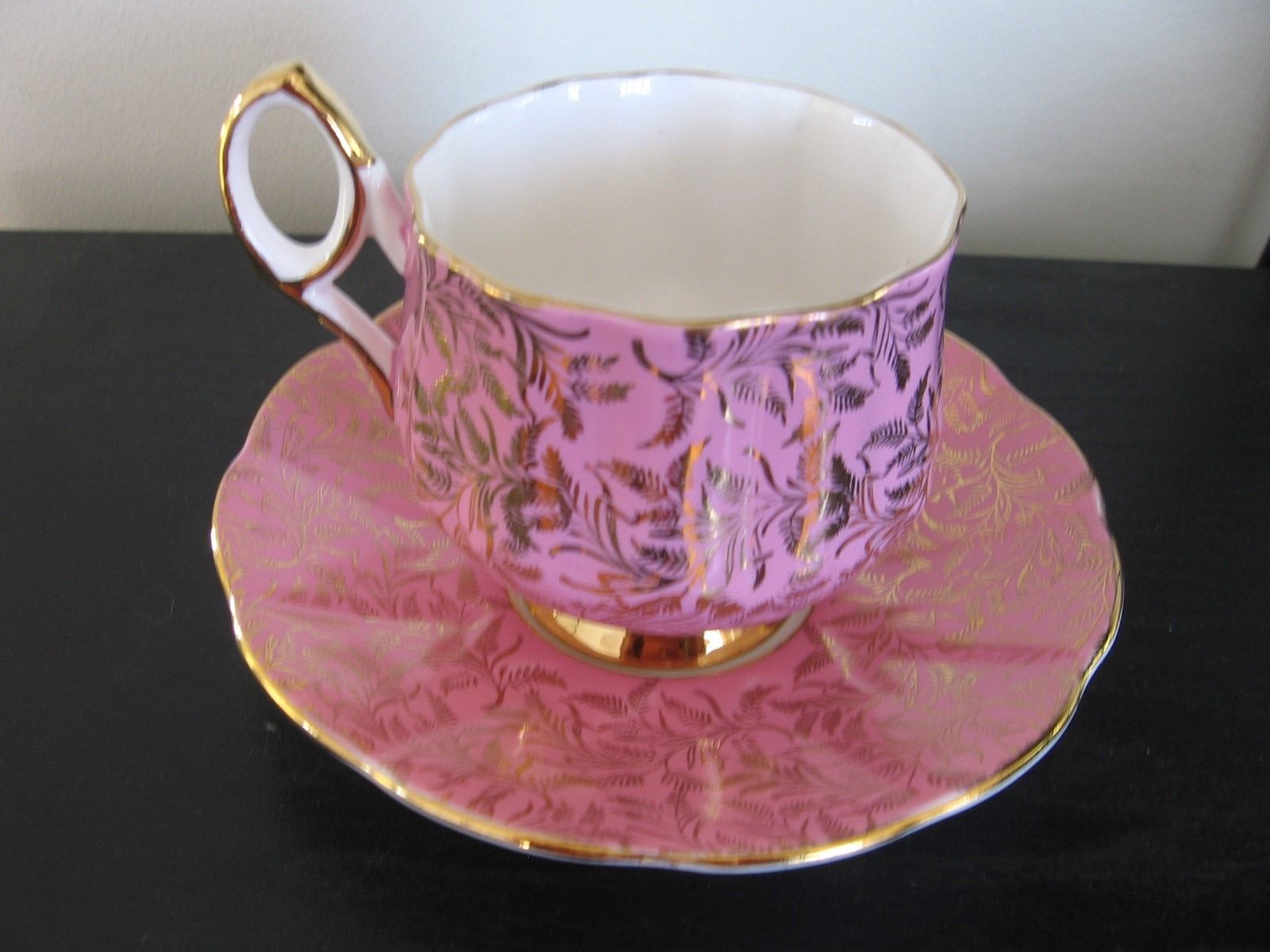 ELIZABETHAN ENGLAND PINK GOLD CHINTZ TEACUP AND SAUCER
