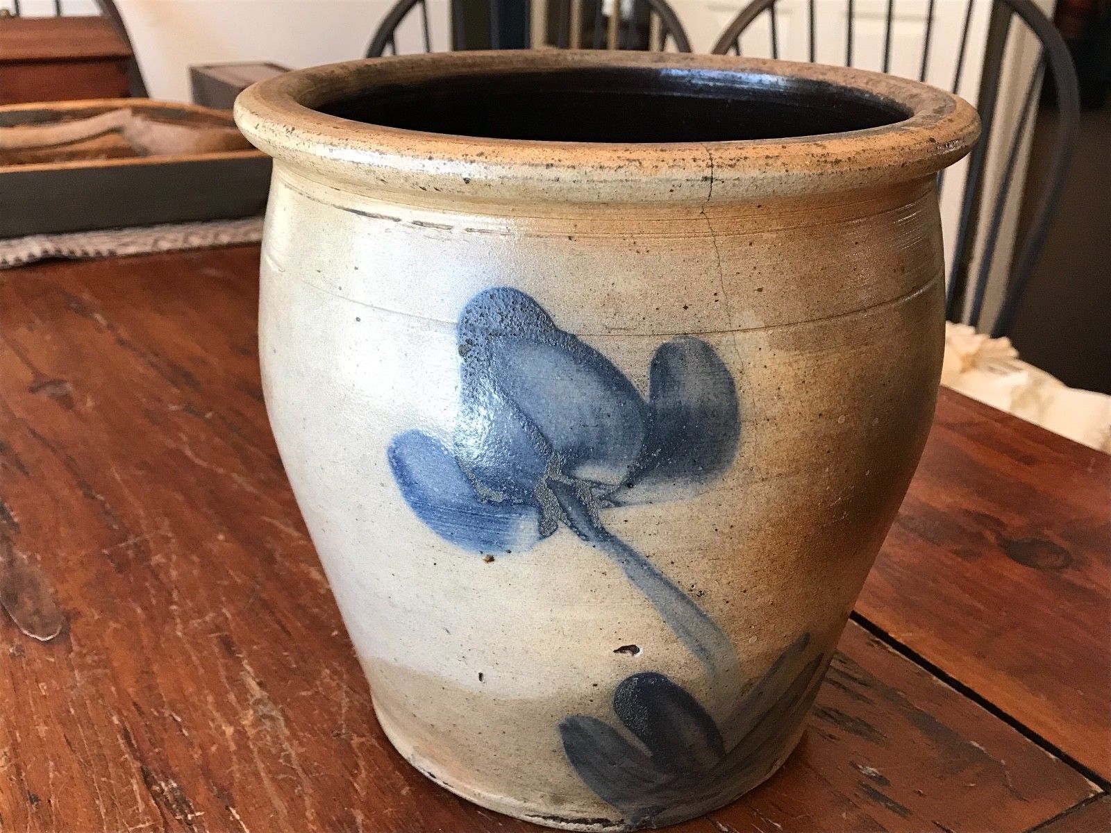 8" Blue Decorated Stoneware Crock Attributed to Daniel Shenfelder