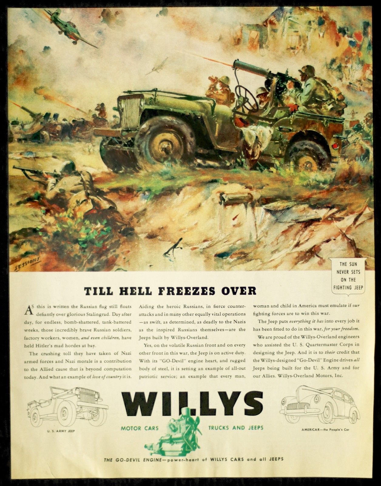 Title (ebay affiliate link): RARE 1943 WILLYS JEEP WWII Till Hell Freezes Over War Combat Truck Vtg PRINT AD