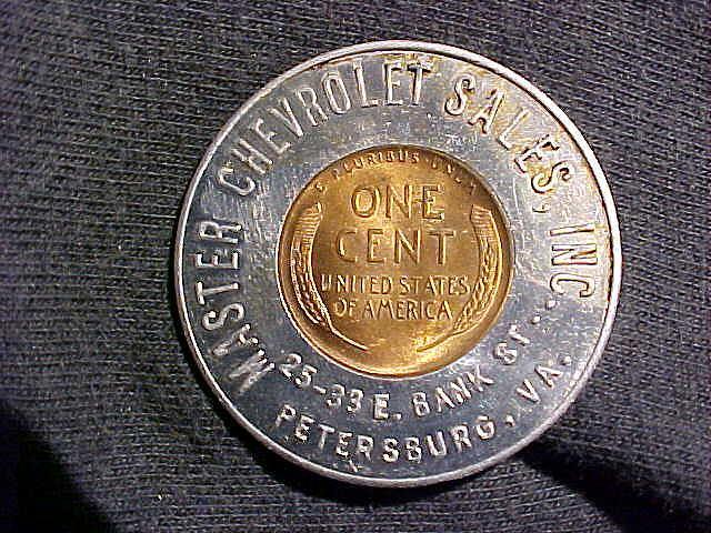 Title (ebay affiliate link): Original 1948 Encased Penny MASTER CHEVROLET SALES Petersburg, VA $8.88 No Res