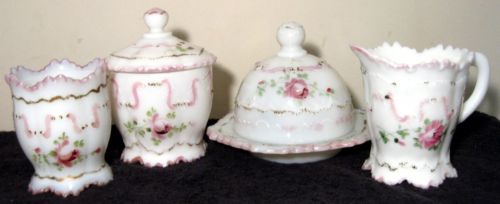 EAPG Milk Glass 4 Piece Table Set Butter, sugar, Spooner and Creamer