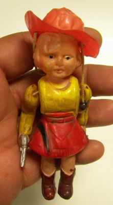 Vintage DOLL celluloid Japan COWGIRL GIRL 4" TALL