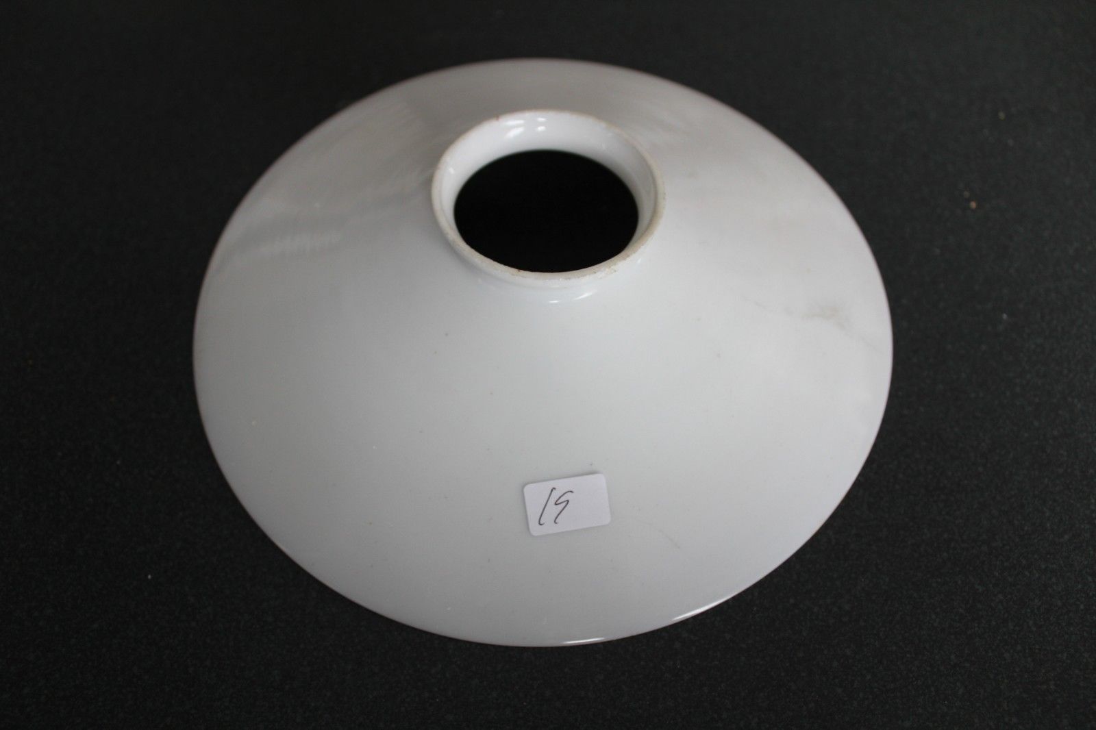 Title (ebay affiliate link): ANTIQUE MILK GLASS NOT RUFFLED EDGE PETTICOAT CHIMNEY OIL LAMP SHADE 19 OF 19