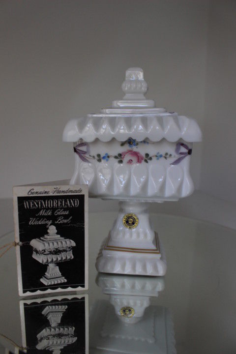 Title (ebay affiliate link): Westmoreland Wedding Jar Covered Compote Candy Dish Milk Glass Lid Bowl