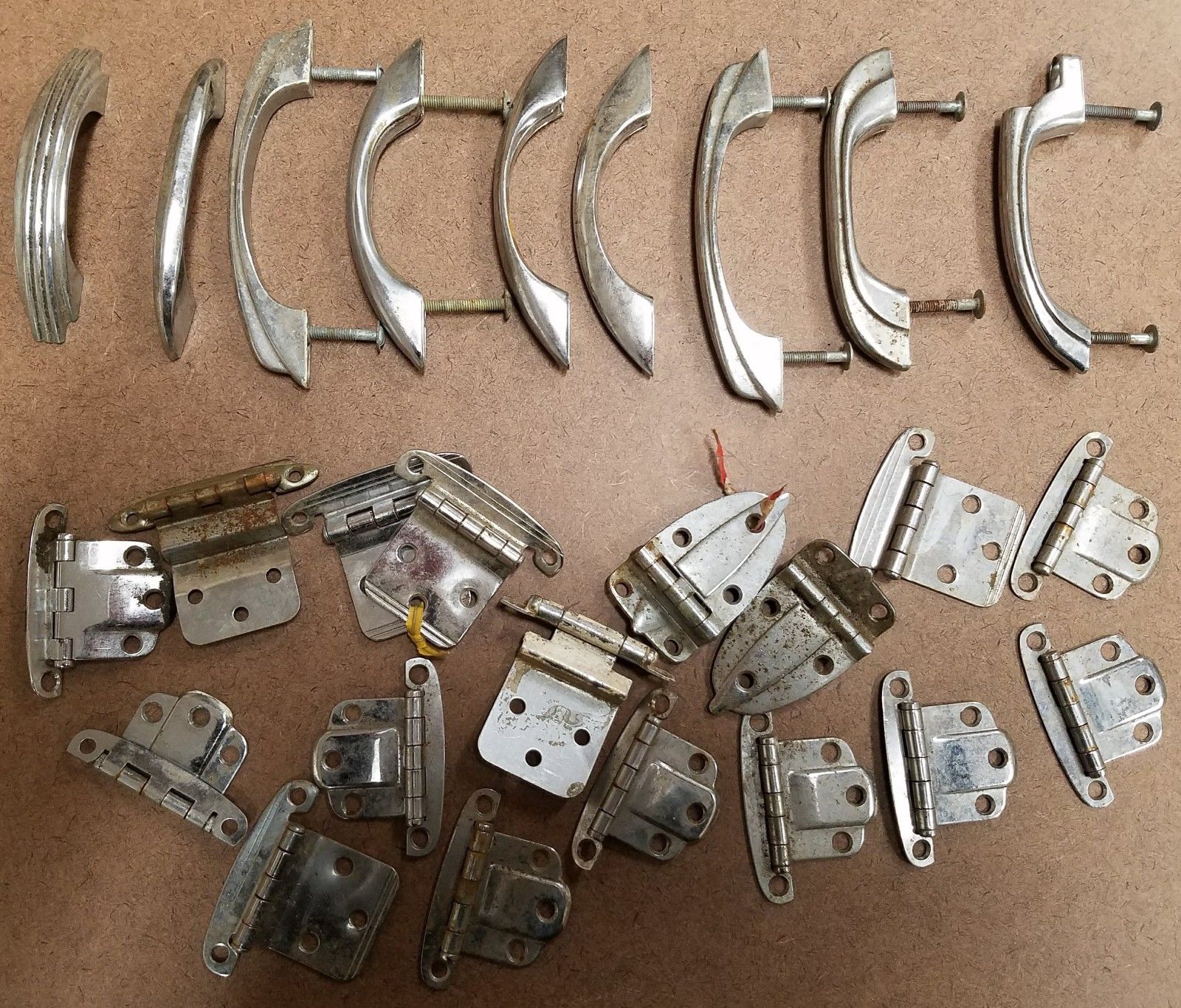VTG CHROME Hardware Lot Antique Hinges Drawer Pulls Ornate Salvage Door Handle