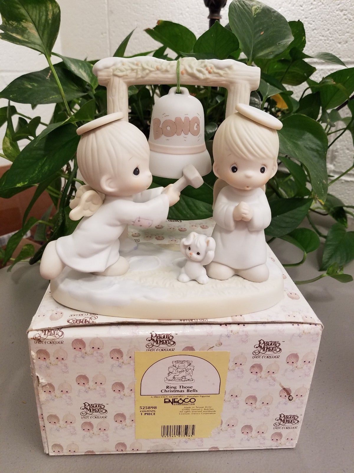 Title (ebay affiliate link): PRECIOUS MOMENTS "RING THOSE CHRISTMAS BELLS" 525898 ANGEL RINGING BELL/BV$185