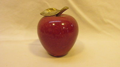 Title (ebay affiliate link): RED MARBLE ALABASTER AGATE STONE APPLE PAPERWEIGHT w/ SOLID BRASS STEM & LEAF