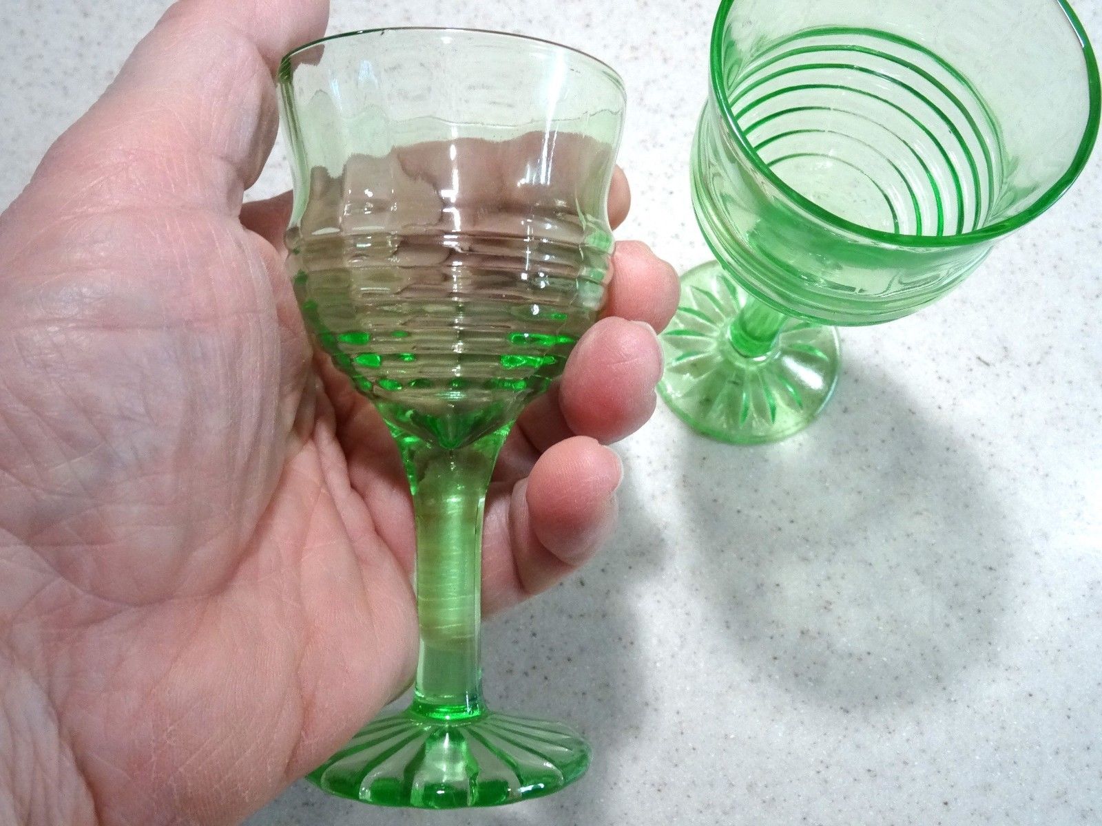 2 Vintage 1930''s Anchor Hocking Green Circle Depression Wine Glasses