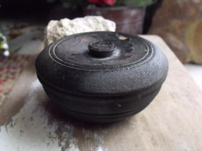 Primitive Antique Turned Wood Powder Box With Shabby Black Finisn