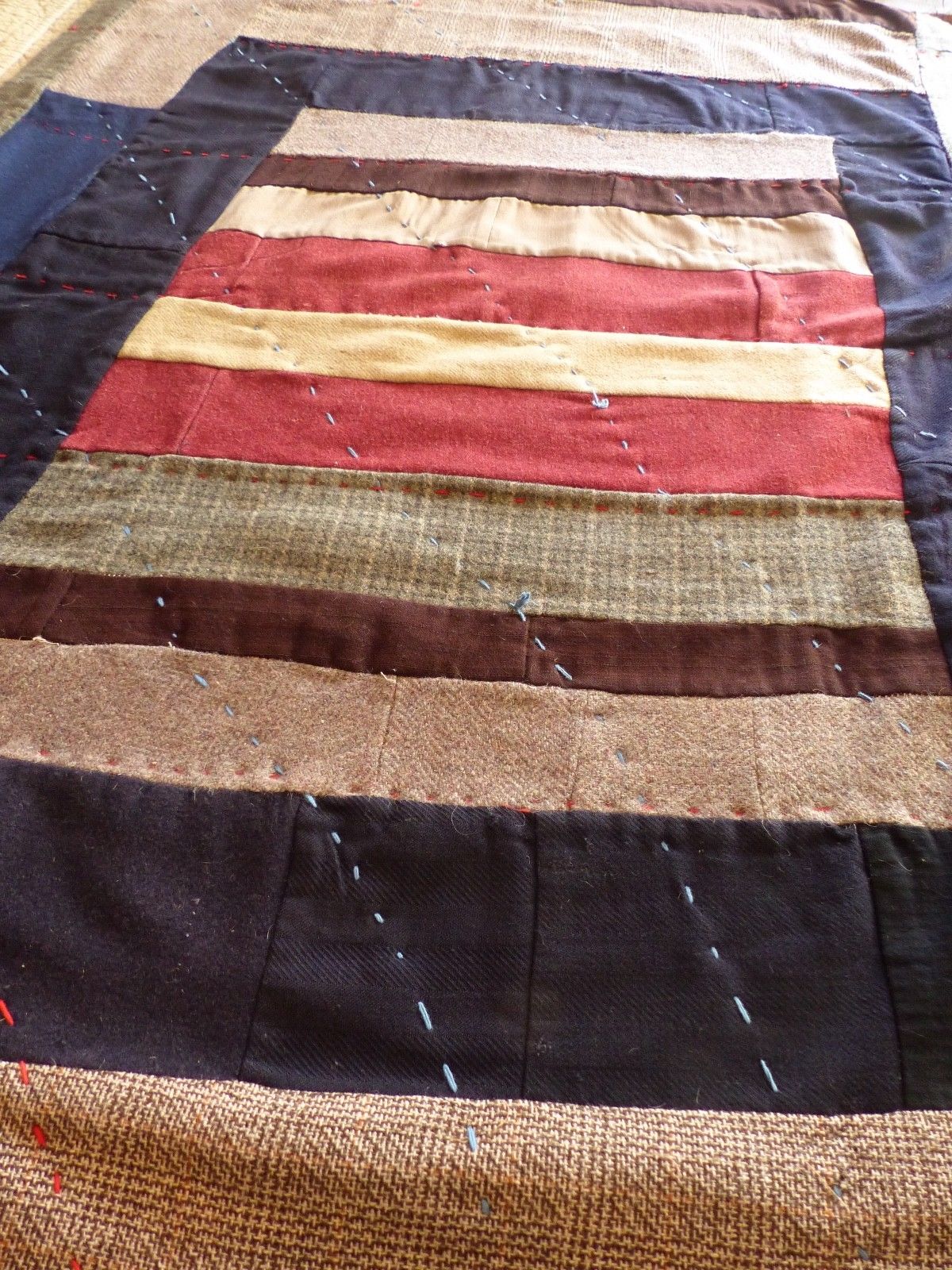 EARLY SMALL WOOL FOLKY SCRAP QUILT