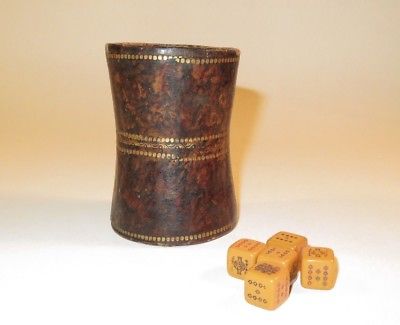 NICE 19TH CENTURY LEATHER CUP WITH DICE