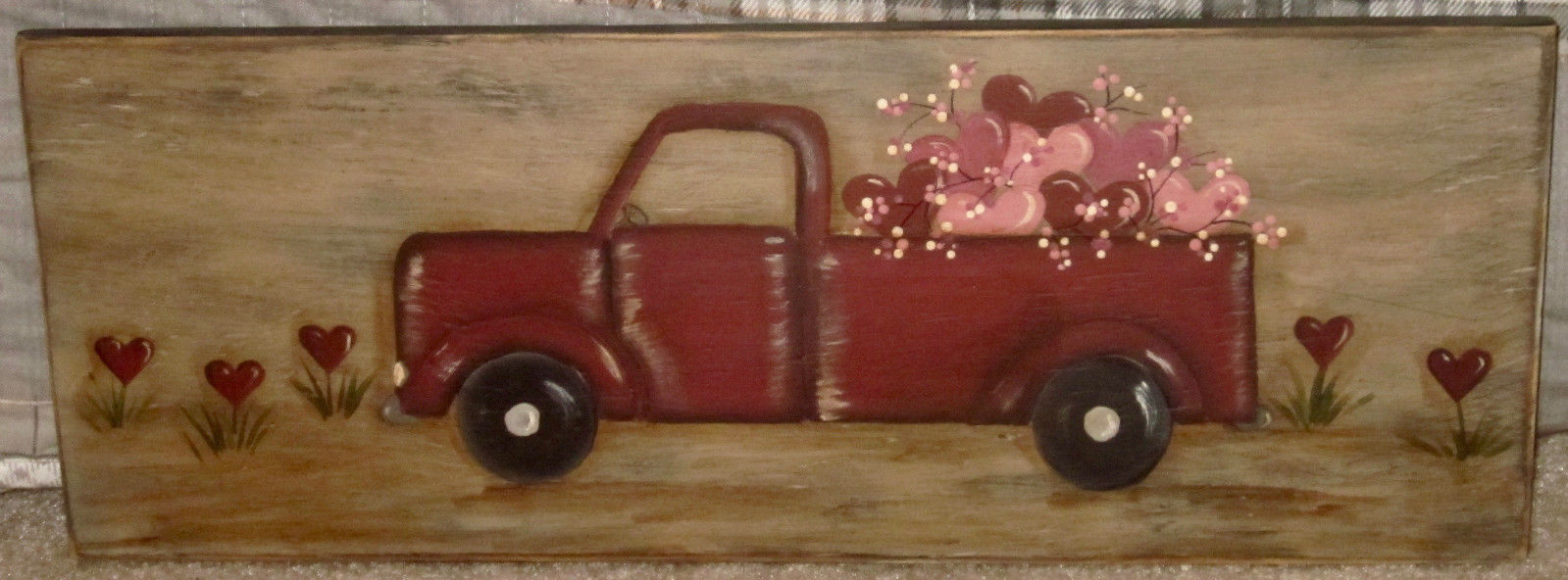 Title (ebay affiliate link): *~*PRIMITIVE*~* HP FOLK ART PRIM RED TRUCK *~* HEARTS *~* VALENTINE *~* BOARD