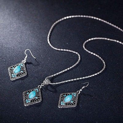 Title (ebay affiliate link): Antique Tibetan Silver Rhombus Shape Turquoise Necklace and Earrings Jewelry Set