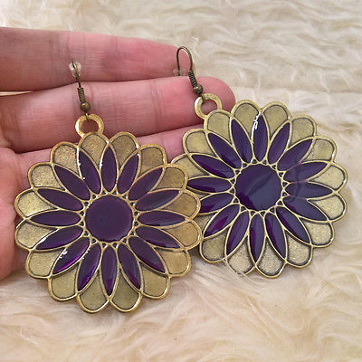 Title (ebay affiliate link): NEW Womens Antique-Gold-Tone Purple Big Flower Chandelier Dangle Hook Earrings