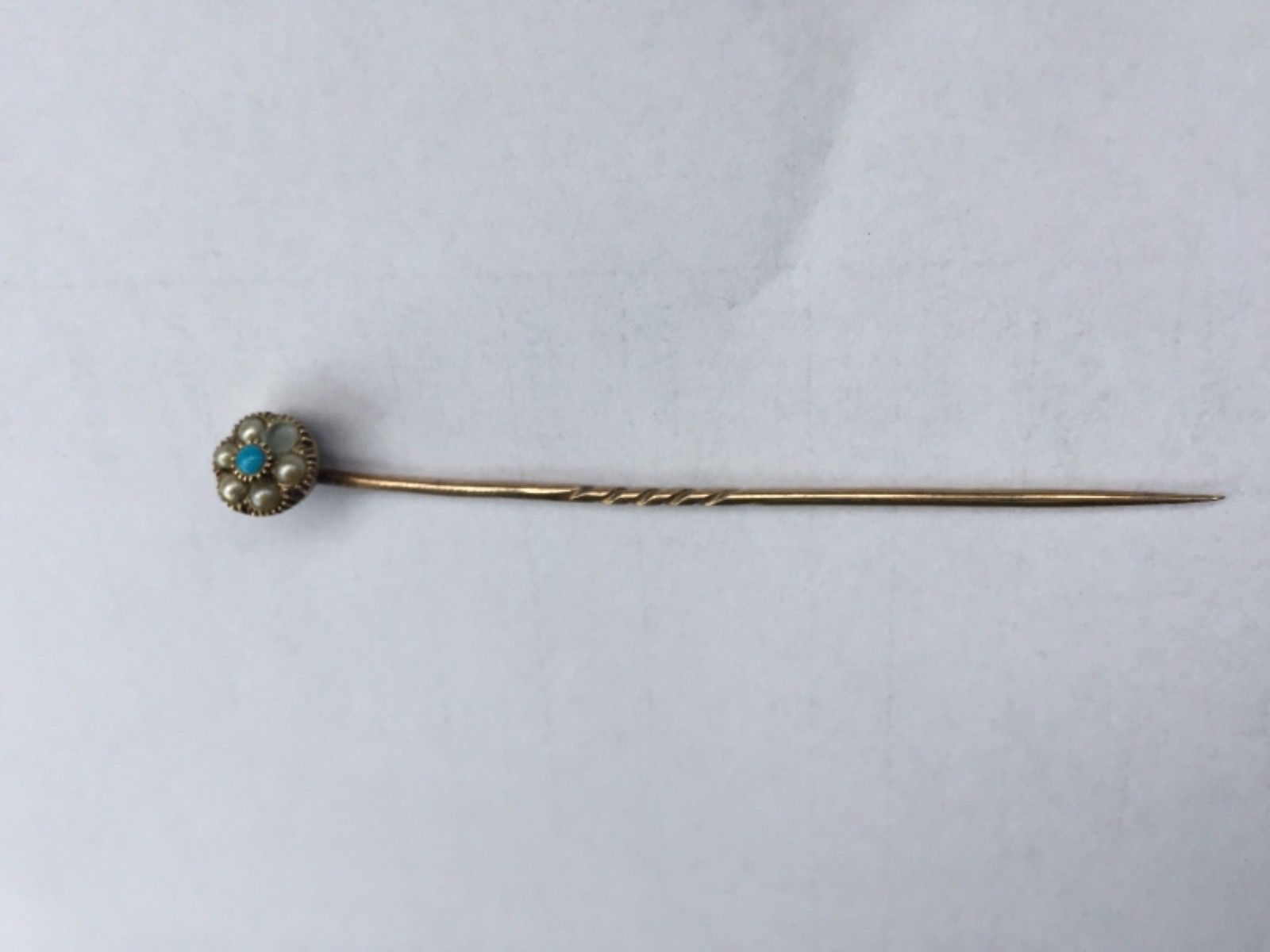 Title (ebay affiliate link): Fine Antique Victorian 9ct Gold & Seed Pearls Turquoise Stick pin Tie Pin