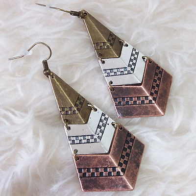 Title (ebay affiliate link): Vintage Bohemian Indiana Antique Metal Color Rhombus Dangle Drop Hook Earrings