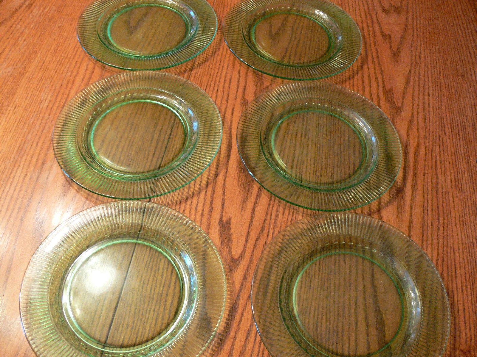 Title (ebay affiliate link): Vintage Green Depression Vaseline Glass 8.75'''' Plates Set of 6 - Beautiful!