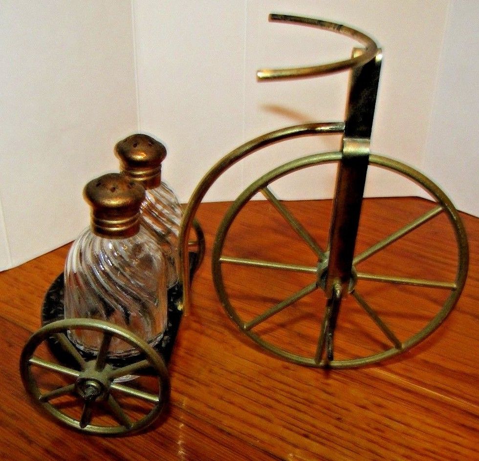 Title (ebay affiliate link): Vintage Salt & Pepper Shakers Metal Bicycle with Glass shakers
