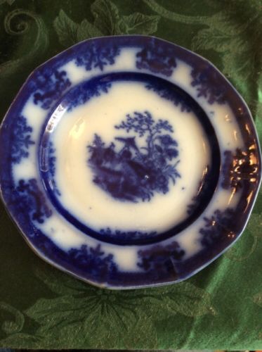 19th C. Davenport "Amoy" English flow blue 8&1/2"blue scenic plate