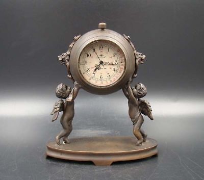 Collectible Handmade Carving Statue Copper Bronze Mechanical Clock Art Deco