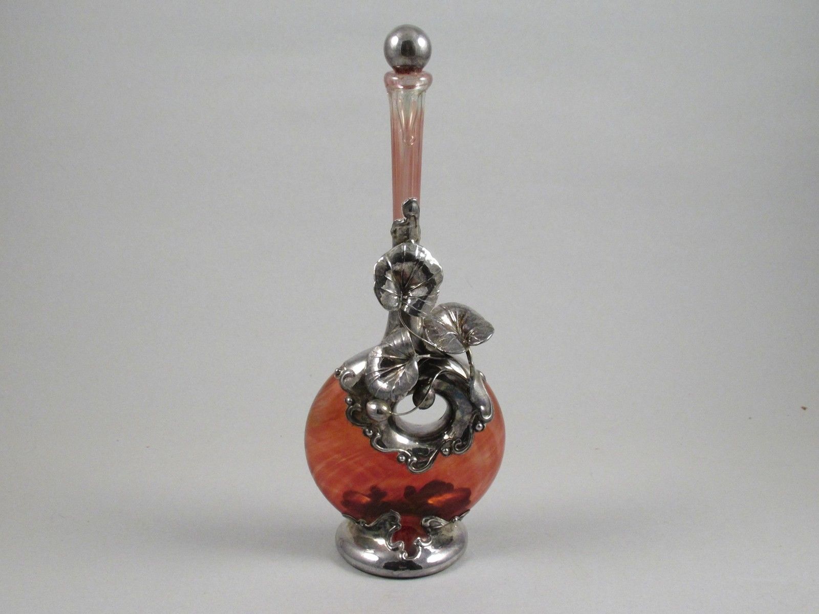 Title (ebay affiliate link): VINTAGE ART NOUVEAU SILVER OVERLAY CRANBERRY ART GLASS PERFUME BOTTLE