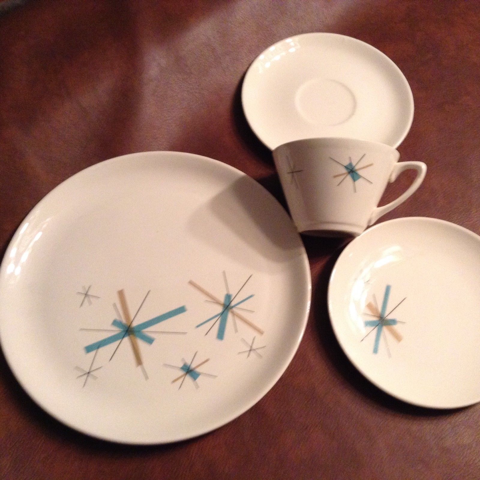 Title (ebay affiliate link): VINTAGE 4 PLACE SETTINGS - NEW IN BOX - BLUE NORTH STAR ATOMIC PLATES