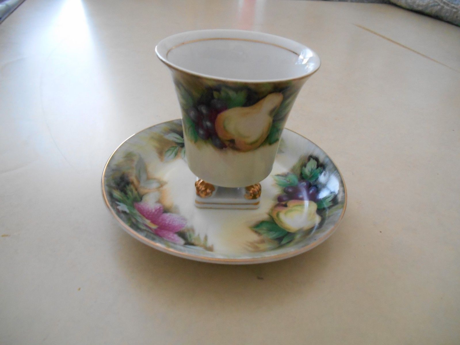 Demitasse Footed Cup and Saucer Fruit Design UOAGCO China