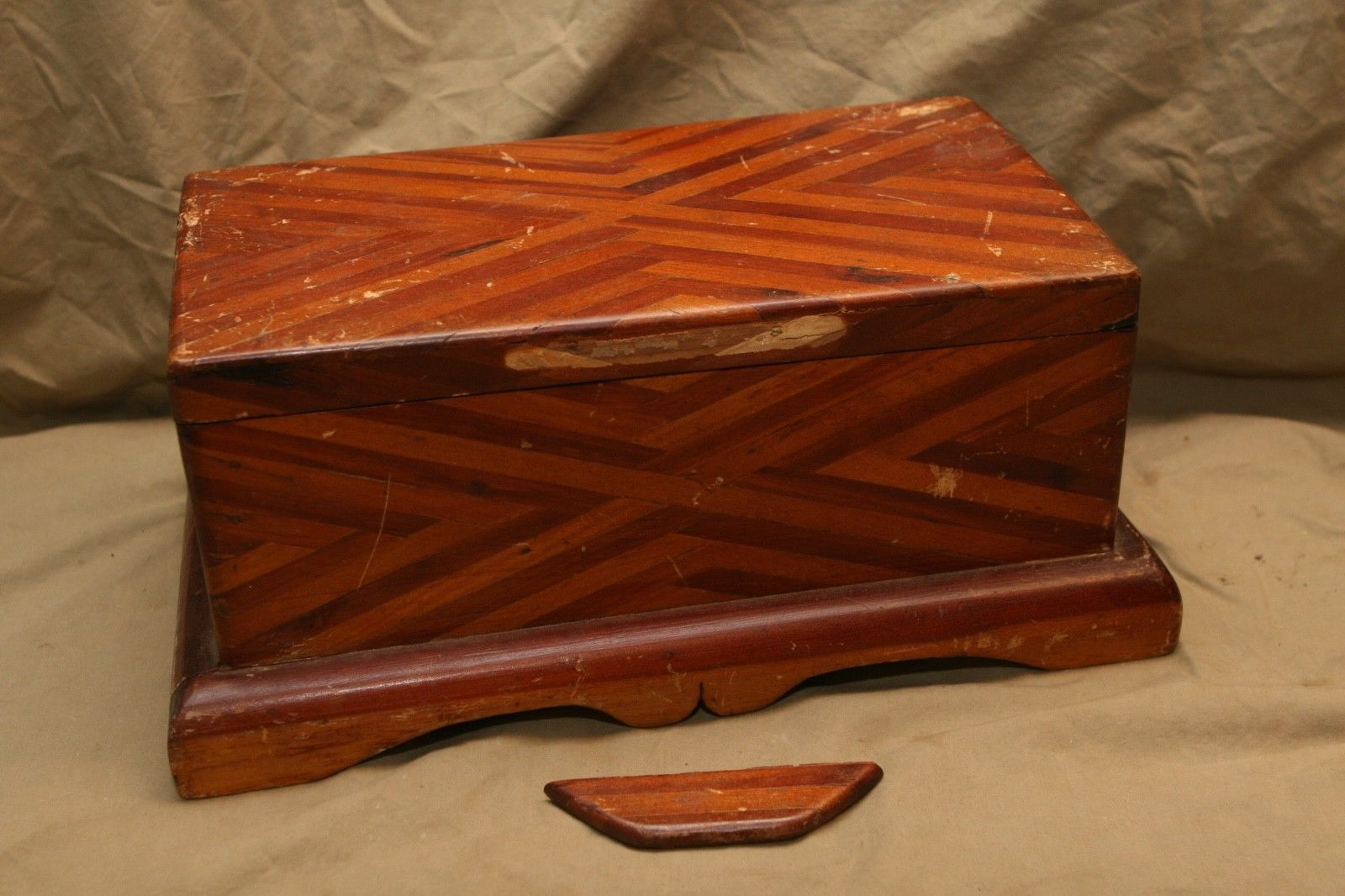 Primitive Vintage Antique Marquetry Inlay Inlaid Tall Storage Box For Repair