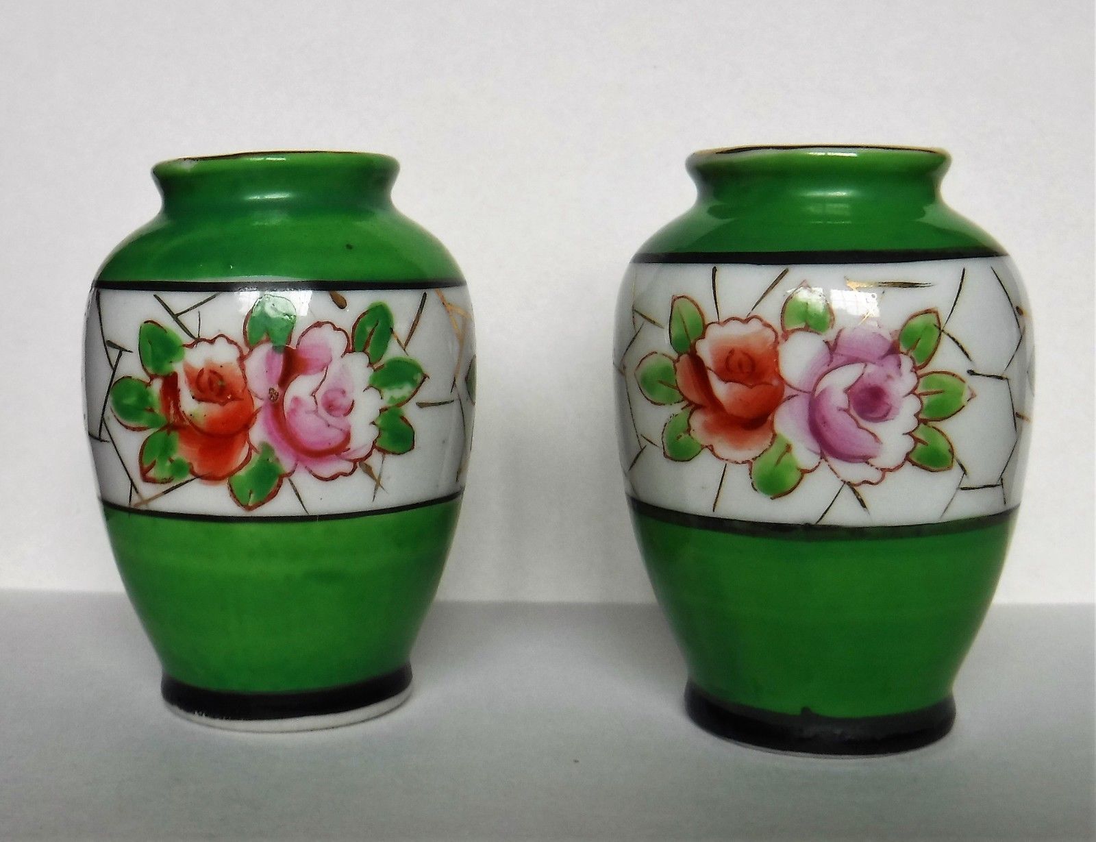 Pair of Vintage Minature Hand-painted Vases - HKATO - Made in Occupied Japan