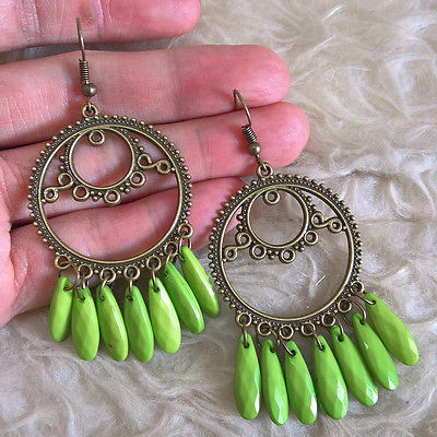 Title (ebay affiliate link): Vintage Womens Bohemian Antique-Tone GREEN Beads Dangle Fall Drop Hook Earrings