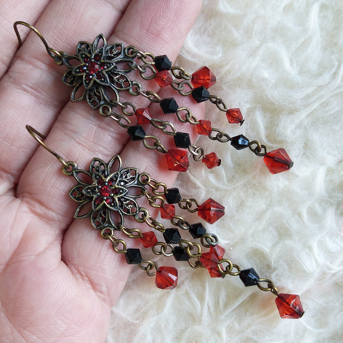 Title (ebay affiliate link): Vintage Womens Antique-Black-Tone Red Black Bead Rheinstone Dangle Hook Earrings
