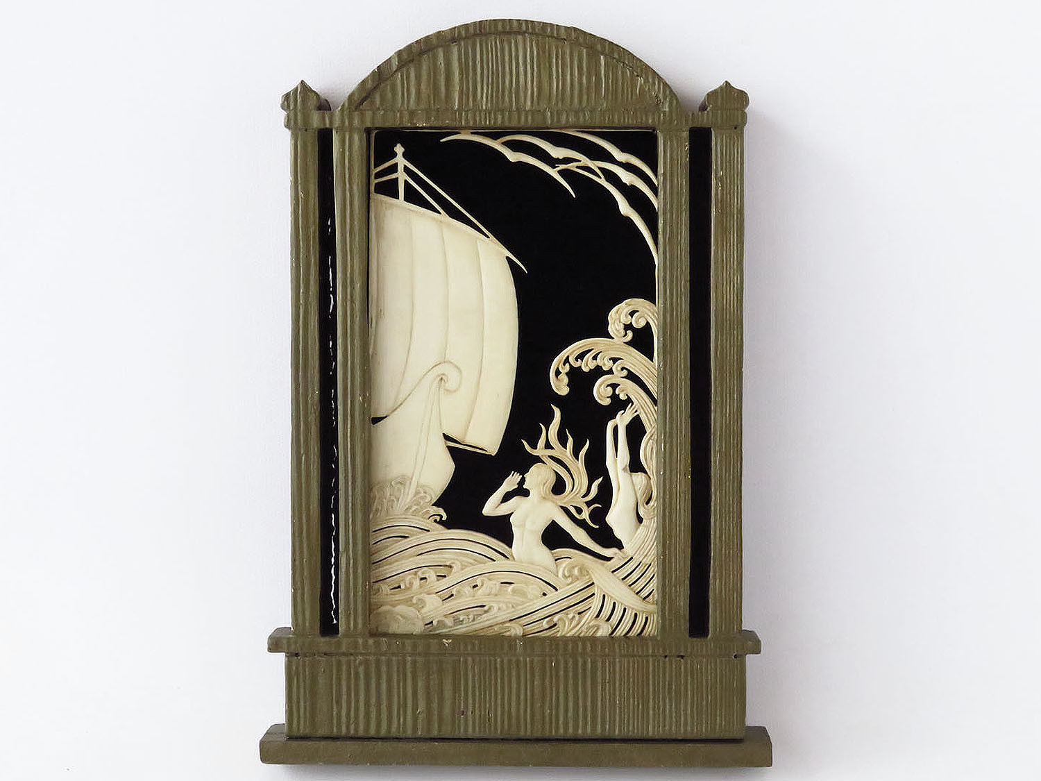 FRENCH CARVED/FRAMED ART DECO SCENE, SCYLLA & CHARYADIS, C. 1920