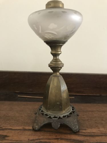 Title (ebay affiliate link): 1880''s~Brass / Pressed-Glass Oil-Lamp + Fancy Cast-Iron Base!! Victorian~LOVELY!