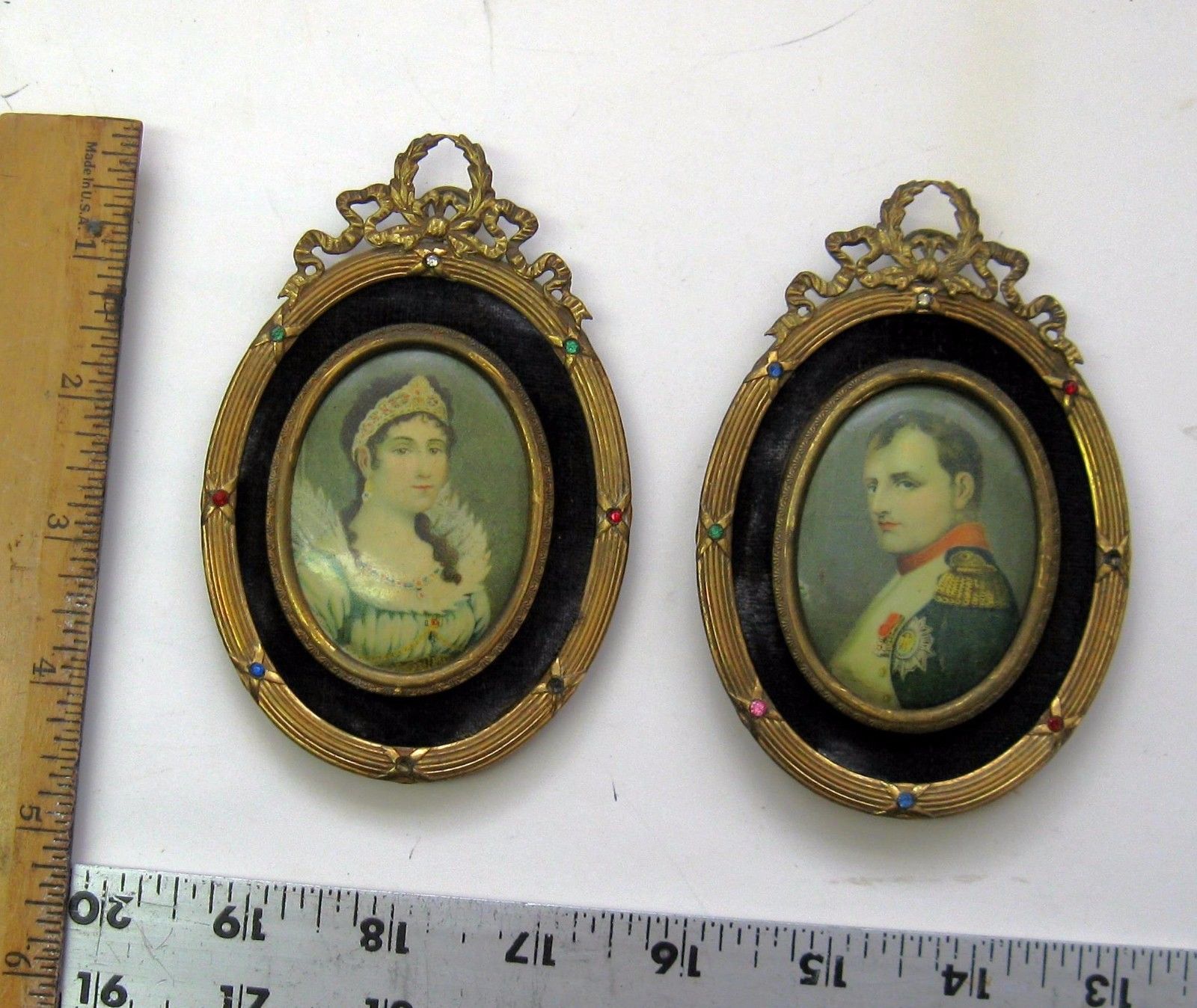 Title (ebay affiliate link): 2 old mini portraits Napoleon Josephine chromolithos gilt jeweled frames Germany