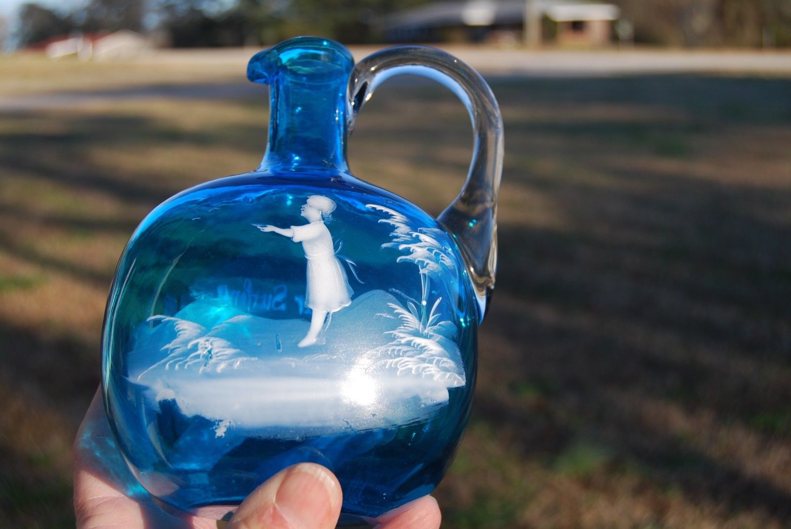 Title (ebay affiliate link): Blue White Mary Gregory Advertising Pitcher/Liqueur Surfine P. Bardinet Limoges