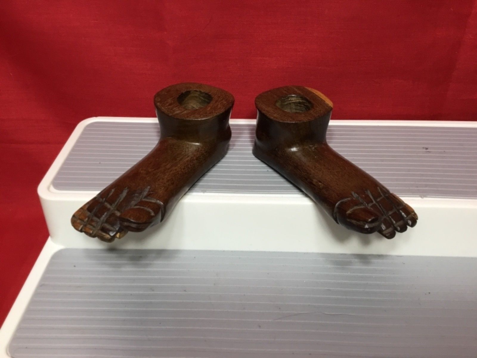 Vintage Hand Carved Wooden Feet Folk Art Candle Holders