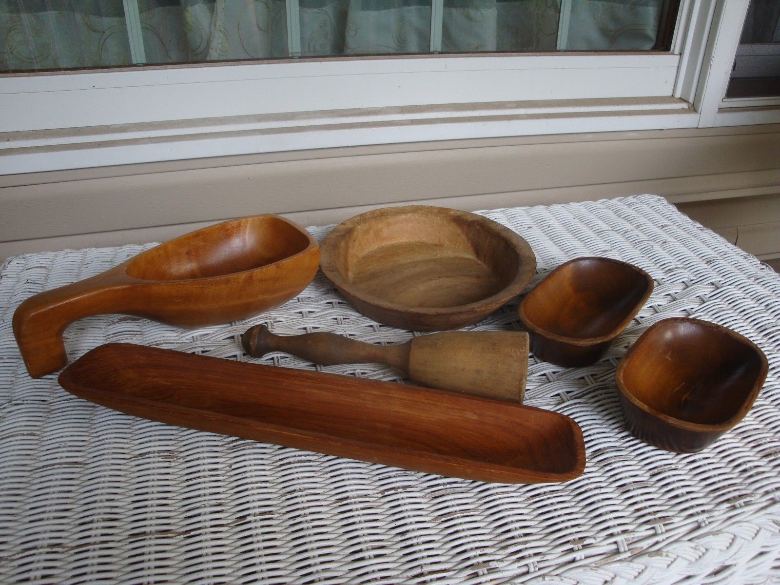 Title (ebay affiliate link): Antique Primitive Wooden Bowls Kitchen Tools Vintage Country Decor Rustic Lot