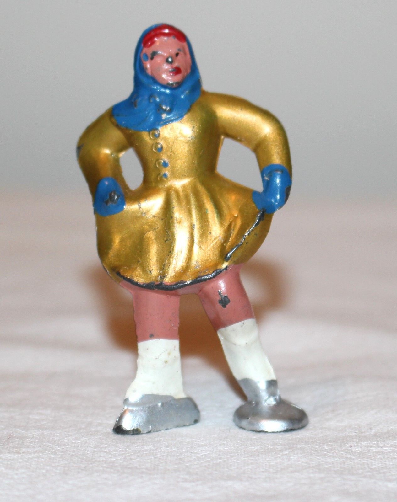 Title (ebay affiliate link): Gold Dressed & Skirted Lady figure Skater. 1930s Barclay Lead Figure. U.S.A.