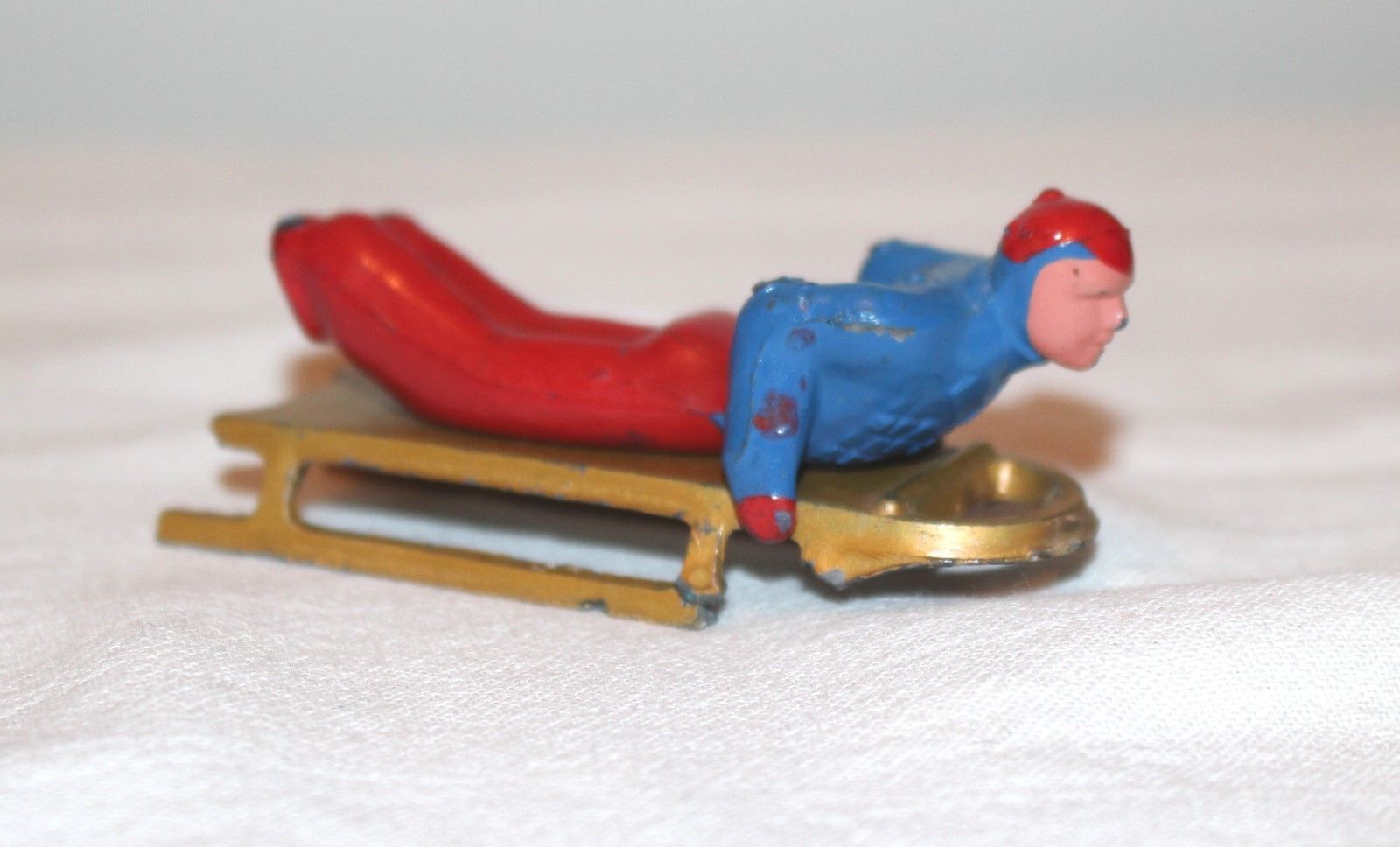 Title (ebay affiliate link): Boy on Stomach, Riding Sled. 1930s Barclay Lead Figure. U.S.A.