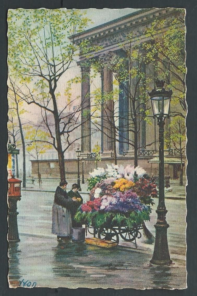 Title (ebay affiliate link): EARLY FRANCE. A LOVELY PICTURE OF A FLOWER SELLER IN MADELEINE SQUARE, PARIS. PC