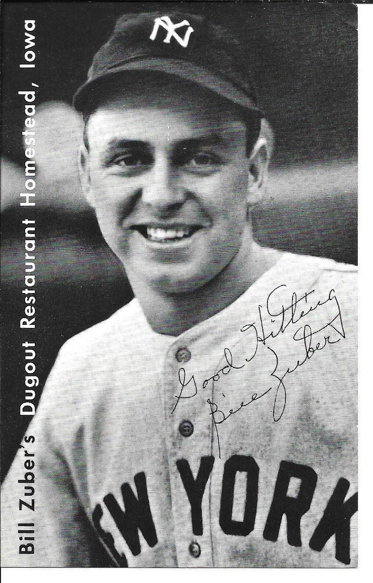 Title (ebay affiliate link): B&W PC, Bill Zuber, NY Yankees, advertising his restaurant in Homestead, IA