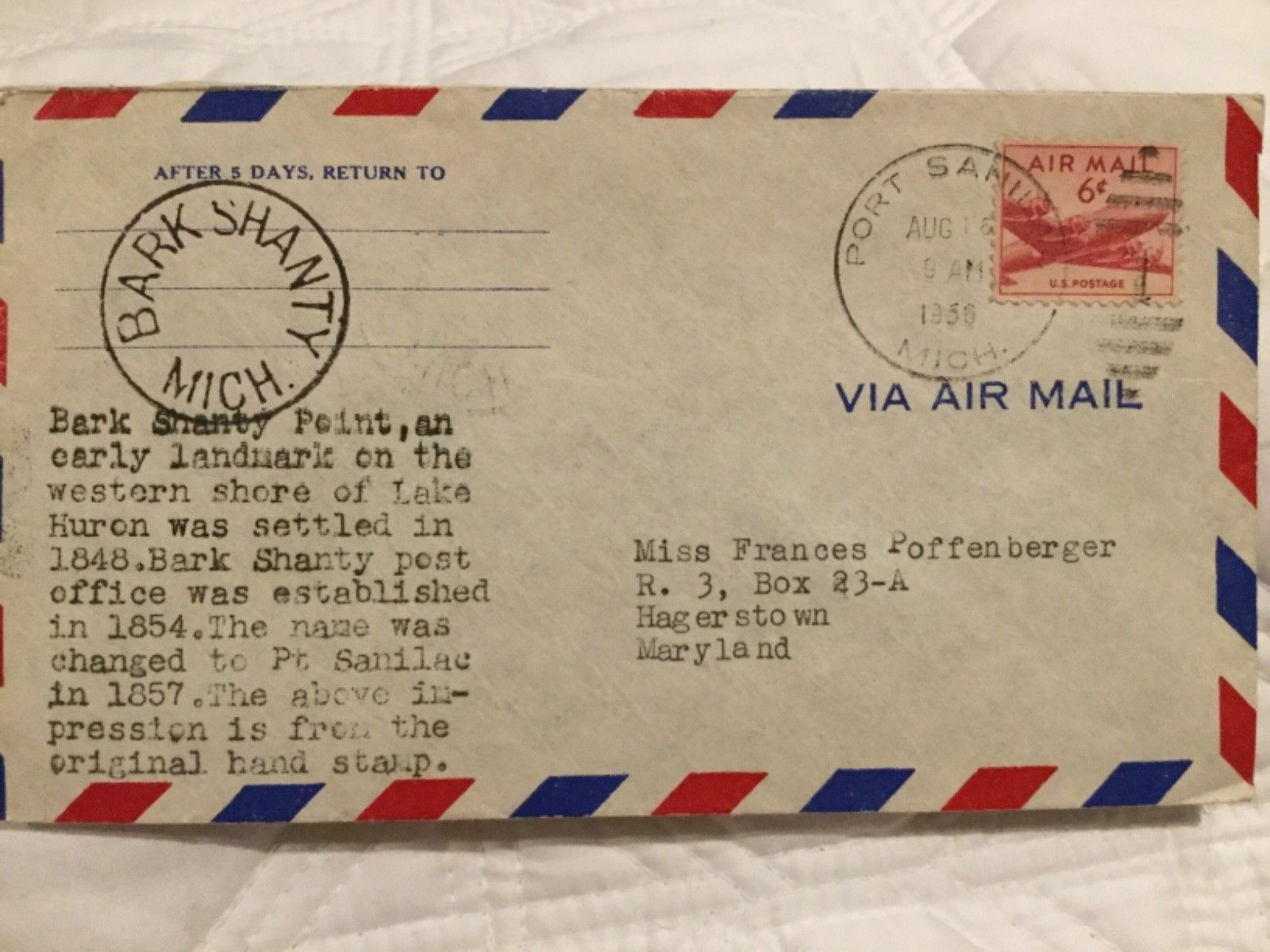Title (ebay affiliate link): Port Sanilac MI Cancel on Cover AND Original Bark Shanty Mich handstamp