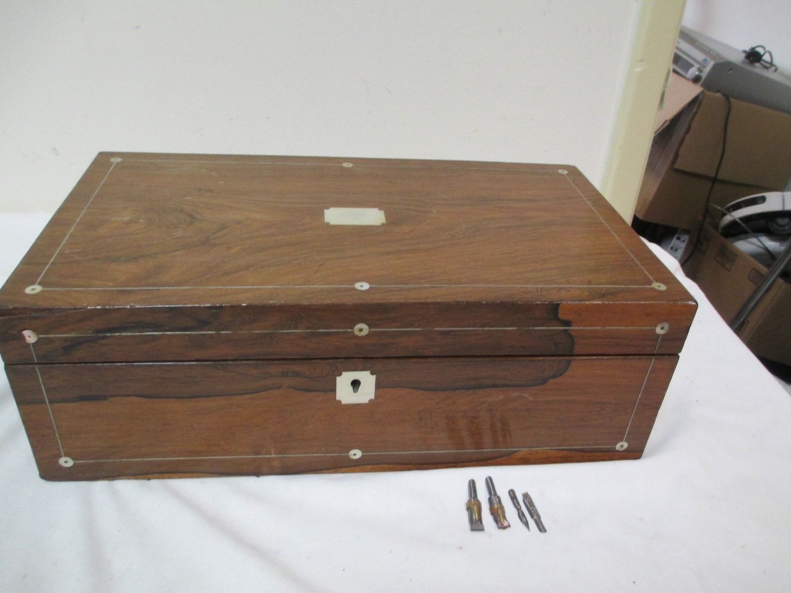 Antique Vintage Inlaid Walnut Document Writing Lap Desk