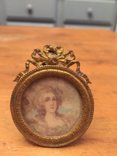 ANTIQUE FRENCH MINIATURE GILT BRONZE FRAMED PICTURE OF 18C WOMEN