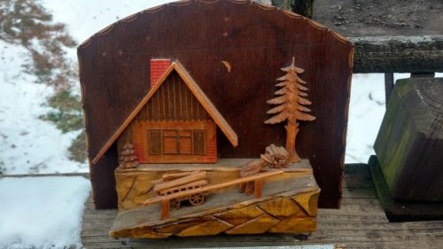 VTG HAND CARVED 3-D HANGING WOOD DIORAMA FOLK ART