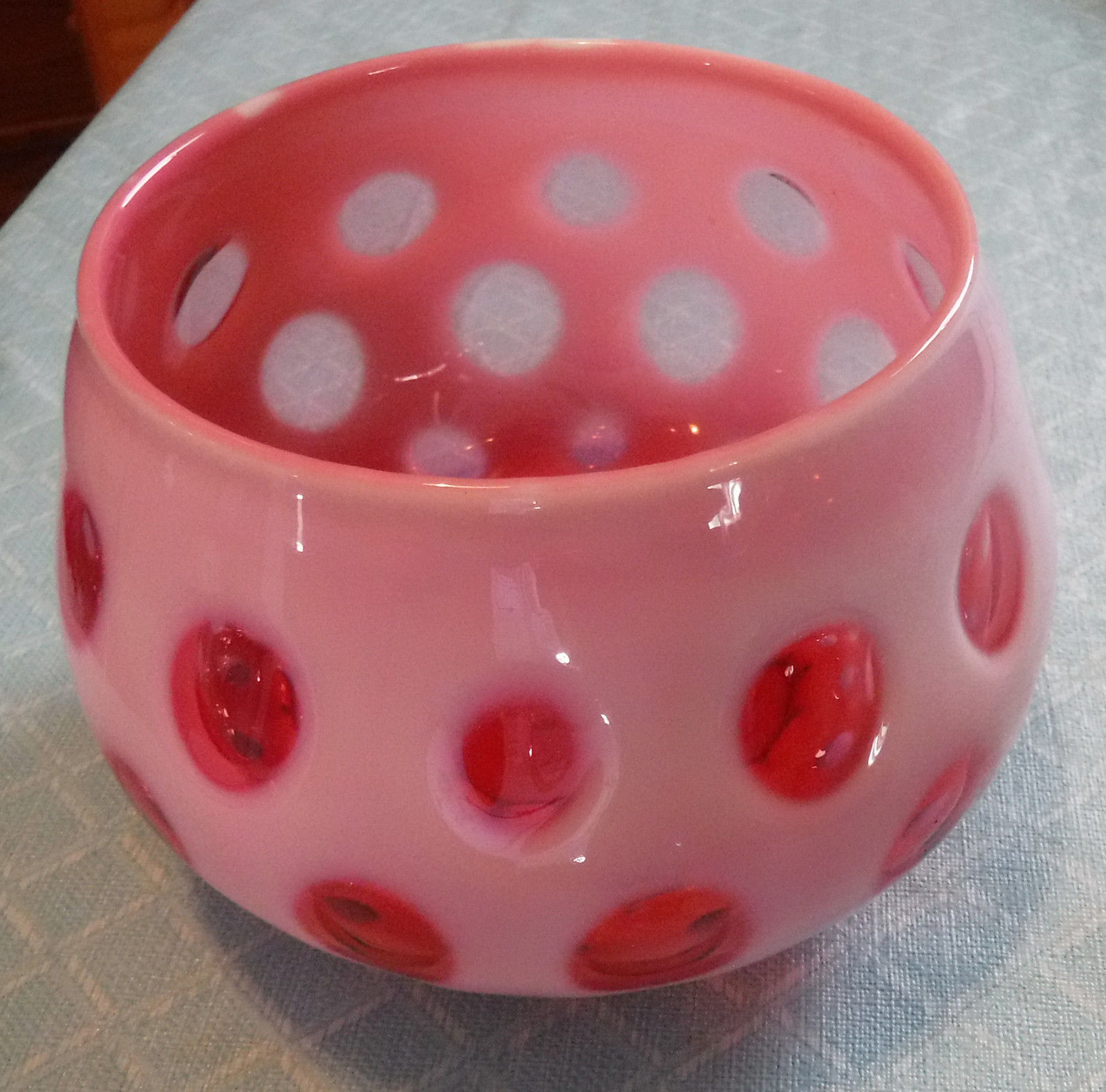 vintage Fenton cranberry opalescent coin dot lamp part~base bowl