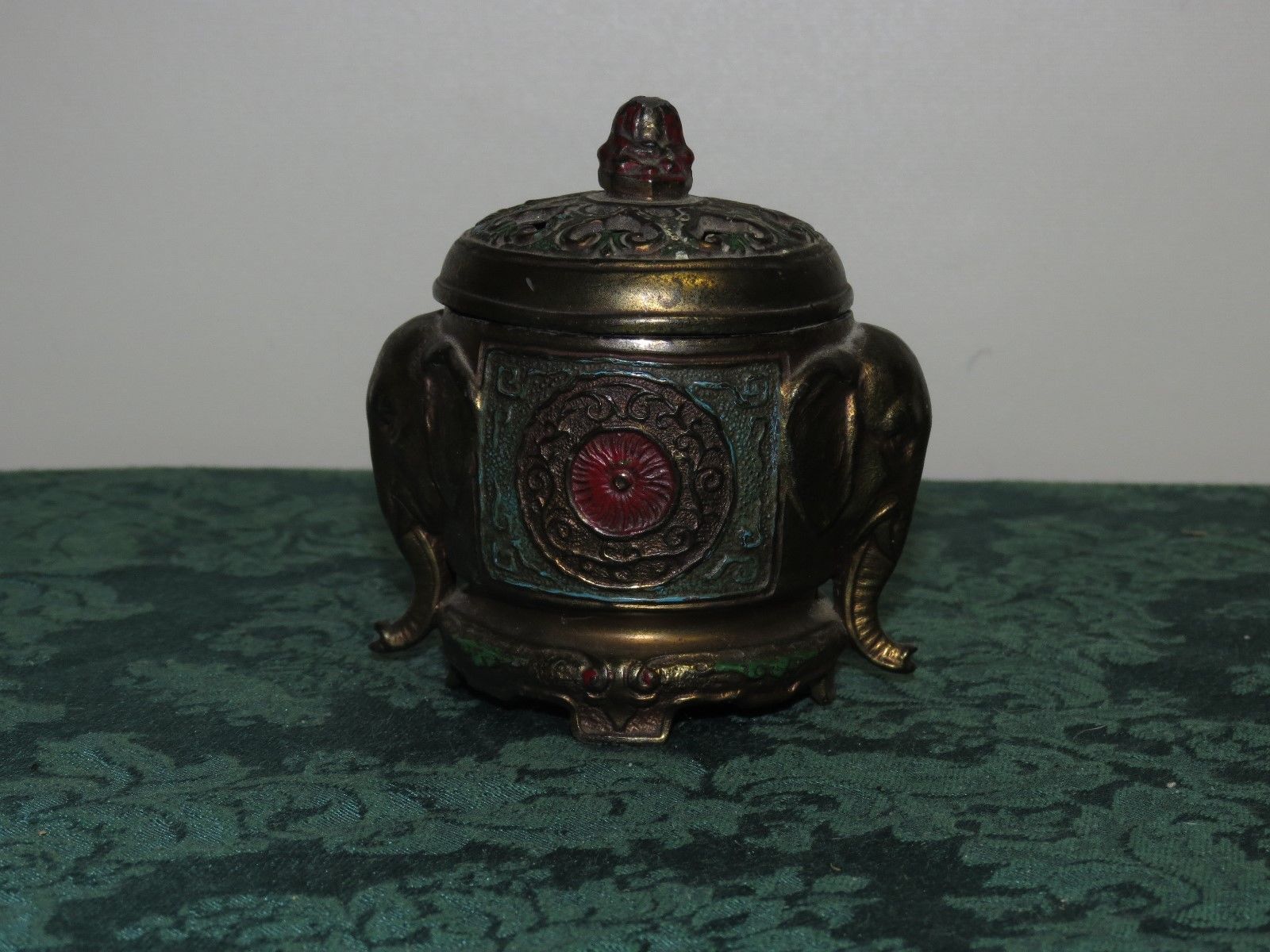L.V. Aronson vintage incense burner 1924 art deco, elephants, art nouveau