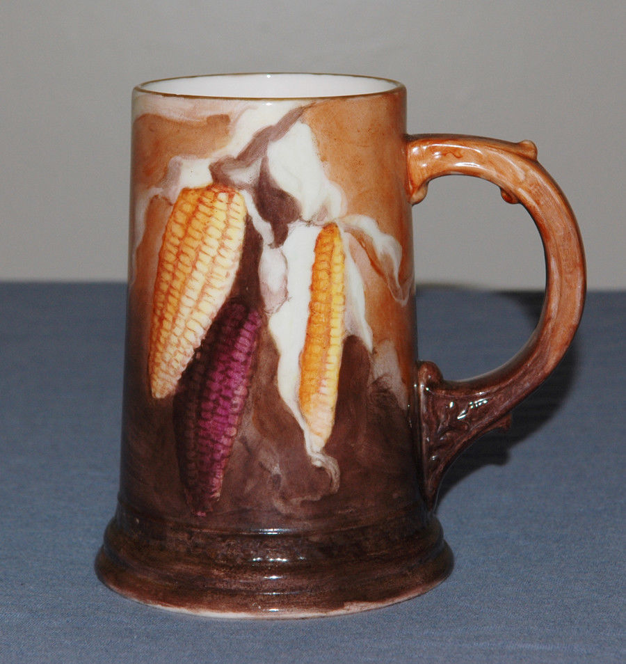 Antique CAC American Belleek Hand Painted Tankard Stein Mug w Corn Cobs