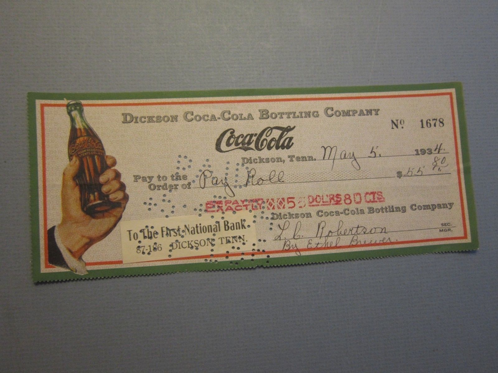 Title (ebay affiliate link): Coca Cola 1934 Bank Check Dickson TN Coke Bottling Co